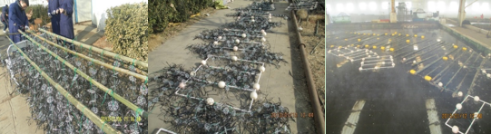 采用竹子浮岛和PVC管浮岛共用的形式,其中竹子浮岛共用20个,PVC管浮岛共用25个,共用2200束填料,10个环每束。