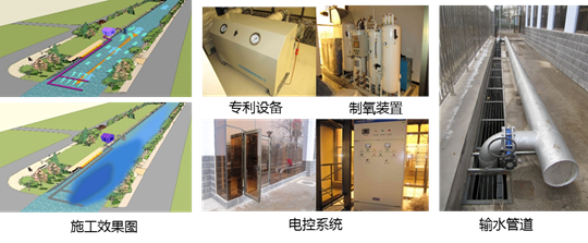 黑臭水体产生的根本原因是由于水体中有机污染负荷过大,水体溶解氧大量消耗造成水体缺氧,水体在厌氧的条件下污染物转化并产生氨氮、硫化氢、及挥发性有机酸等额臭物质。为从黑臭水体产生的根本原理上解决城市黑臭水体,我司通过多年研究,采用“高效富养技术技术”对黑臭水体进行超饱和冲氧,使水体溶解氧含量高达50mg/l,从而有效解决水体黑臭问题。